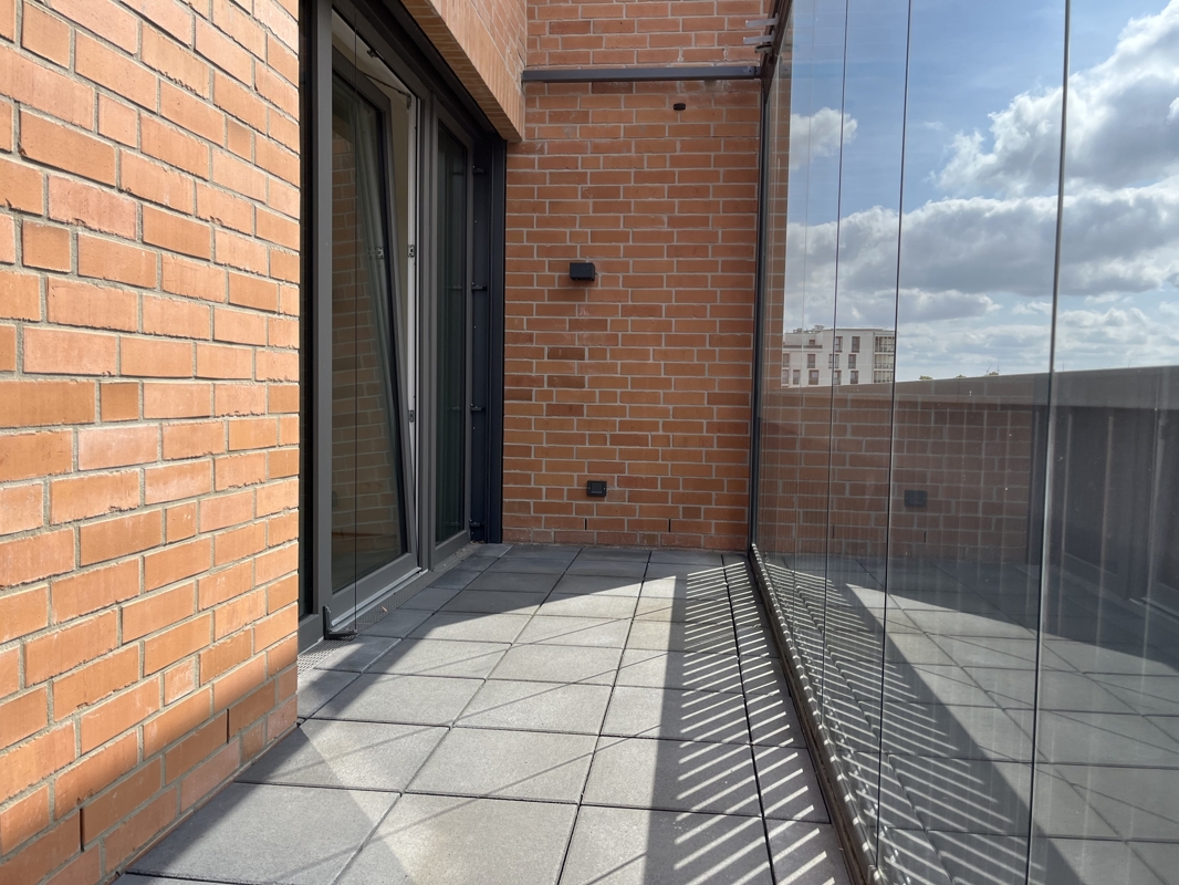- Balkon mit Windschutz (verschiebbare Glaselemente)